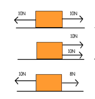 1. 10N- 10N = 0N, Not Moving; Balanced