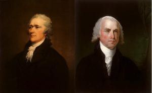 Name two famous Federalists. Hint: One wrote the Virginia Plan, and the other has a famous play based on his life.