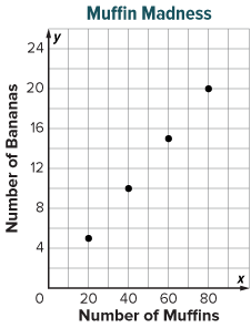 Matthew’s Bakery says it uses 2 bananas to make a batch of 20 banana muffins. The advertised ratios of bananas to muffins for two other bakeries are shown in the table and graph.