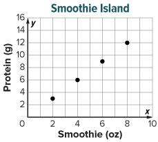 Layla’s Smoothies advertises that it has 3 grams of protein in its 6-ounce smoothie. The advertised ratios of the number of grams of protein to the number of ounces of smoothie for two other smoothie brands are shown in the table and graph.