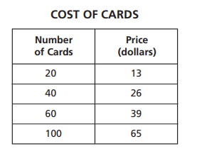 The constant rate is $0.65,--- 13/20, 26/40, 39/60, 65/100.