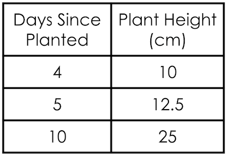 The table below is proportional. Find the Constant of Proportionality (k) and use it to write an equation in the form  y=kx