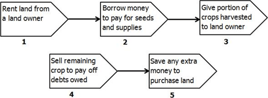 A system common in Virginia after the war in which freedmen and poor white farmers rented land from landowners by promising to pay the owners with a share of the crops.