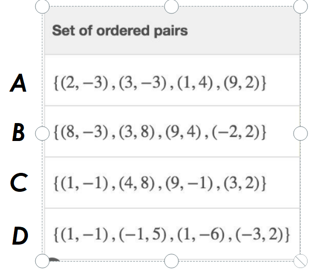 Given the following set of ordered pairs...