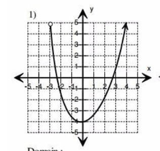 For Domain scan your pencil Left to Right and identify the x-values in which you are "touching" the graph.