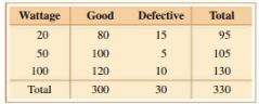 If one of these light bulbs selected at random, determine the probability that the light bulb is defective, given that the light bulb is 20 watts.