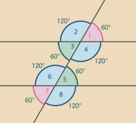 If two angles are supplementary and formed by a transversal crossing parallel lines, they are on the same side of the transversal and they add up to 180 degrees.