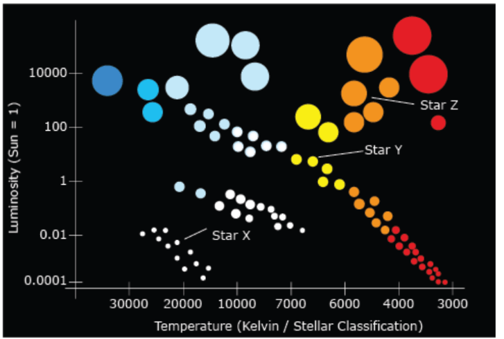 Between stars X,Y, and Z, THIS star is the dimmest.