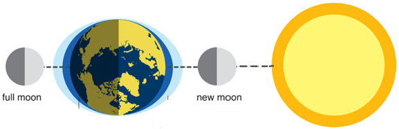 When the moon is in either of the positions shown here, Earth will experience THESE types of tides.