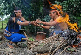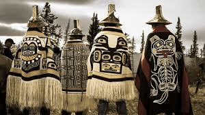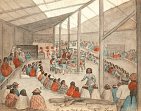 A large feast or celebration where people give gifts to show wealth and honor others.