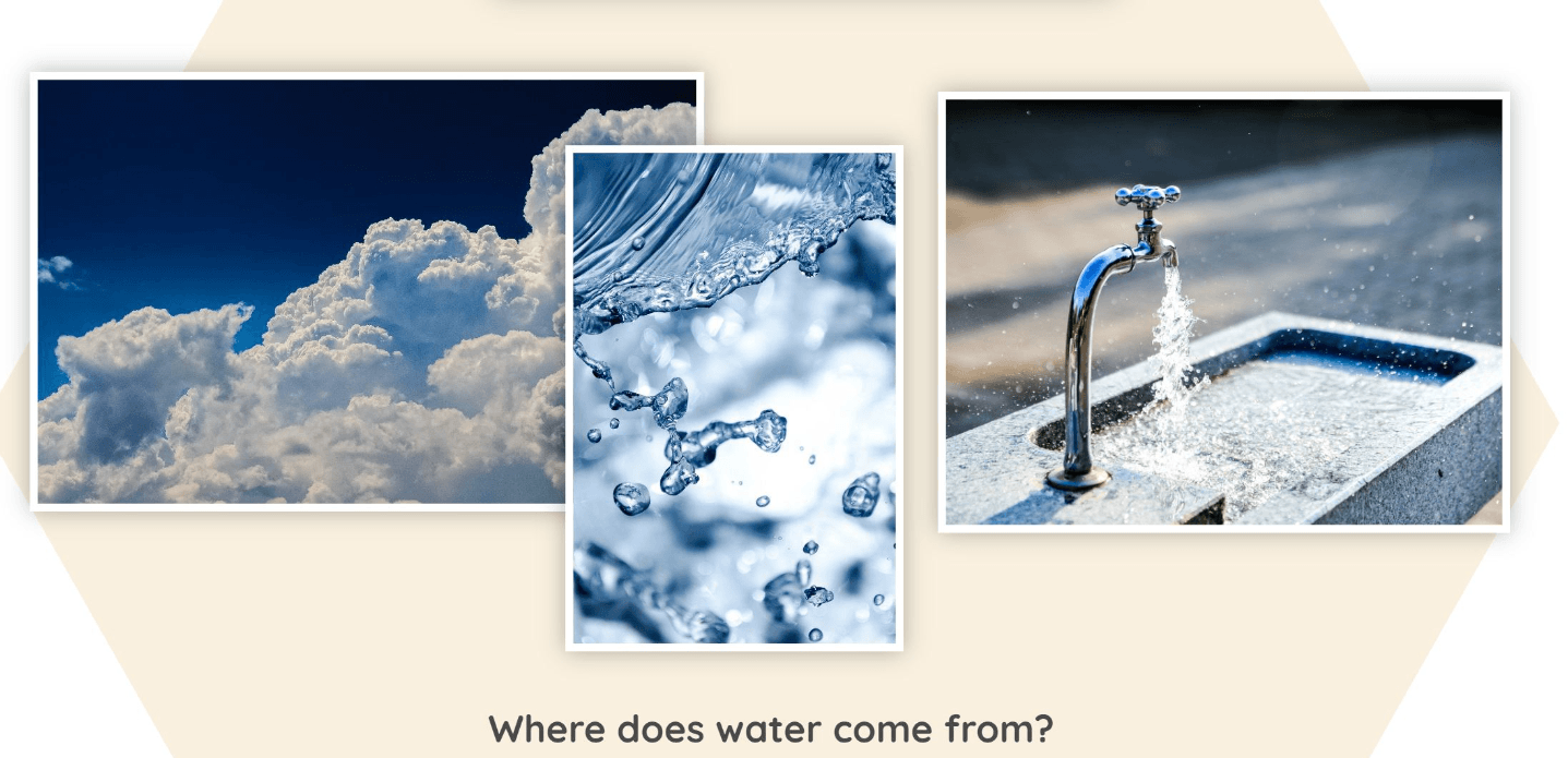Name 3 places that have water.