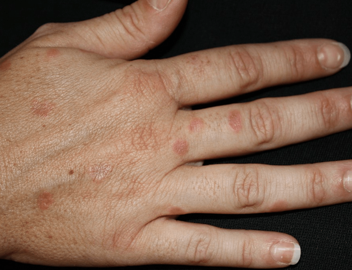- Evanescent pink papules and plaques