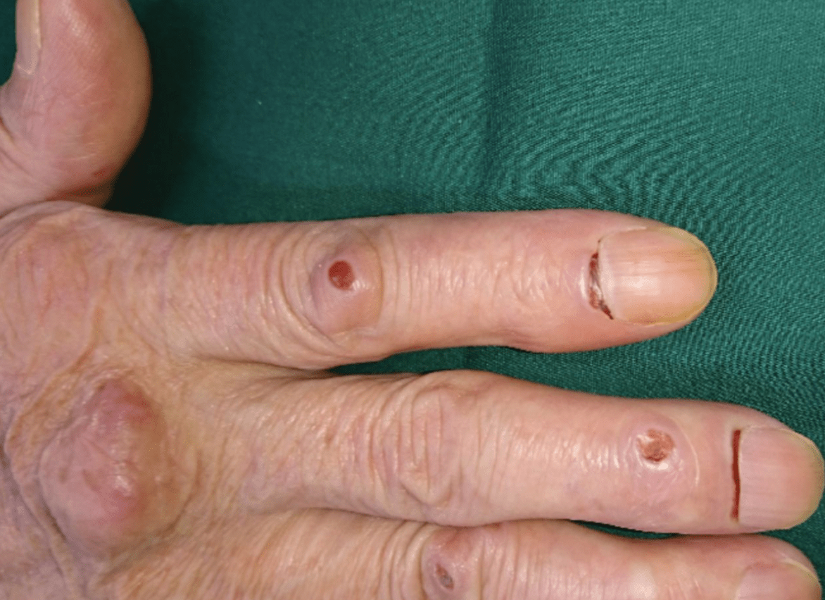 Bywaters' lesions from rheumatoid arthritis