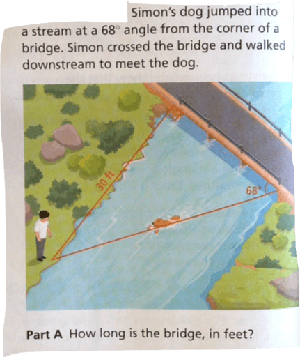 A 15 foot ladder is leaning against the side of a house at a 65 degree angle. What is the distance from the house to the base of the ladder? (4 decimals)
