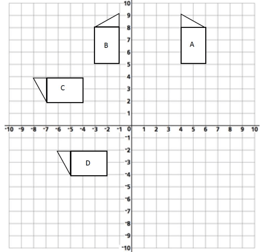 Point E is located at (5,7) and then reflected over the y-axis. The coordinates of point E prime is this.