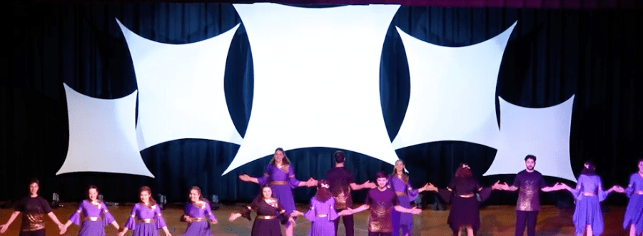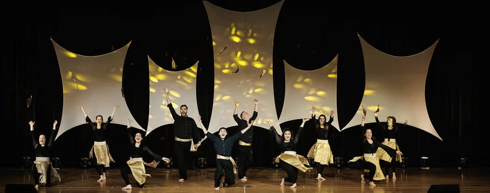 a common Israeli folk dance step that moves in a flowing, wave-like motion. It involves stepping to the side, crossing one foot behind, stepping to the side again, and then crossing in front—repeating in rhythm.