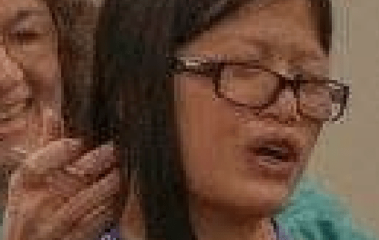Who is the person on the left? Where are they? Bonus -- What are they doing?