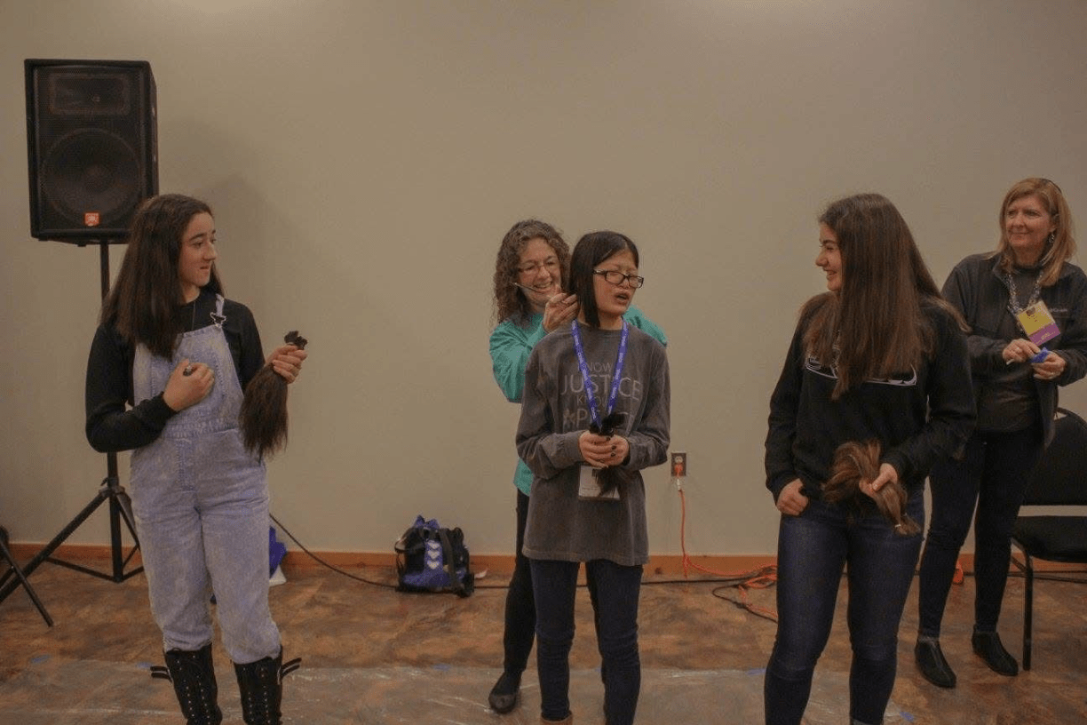 Judy Kerbel at Capital Camps USY Fall Convention, cutting someone's hair for locks for love