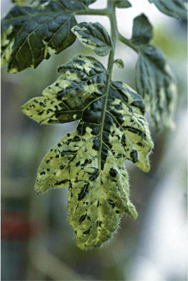 A virus that causes mottled leaves is called this, like an artwork of closely-set tiles or stones