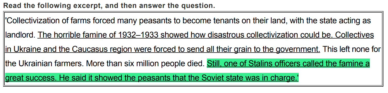 Moved from Feudal economy to collective farms & industrialization with the U.S.S.R.