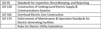 Daily Double!! The CPUC has General Orders establishing requirements for utility work. Match these GO's with their appropriate title.