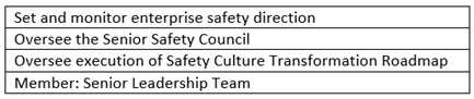 This Safety Council oversees execution of the Safety Culture Transformation Roadmap.