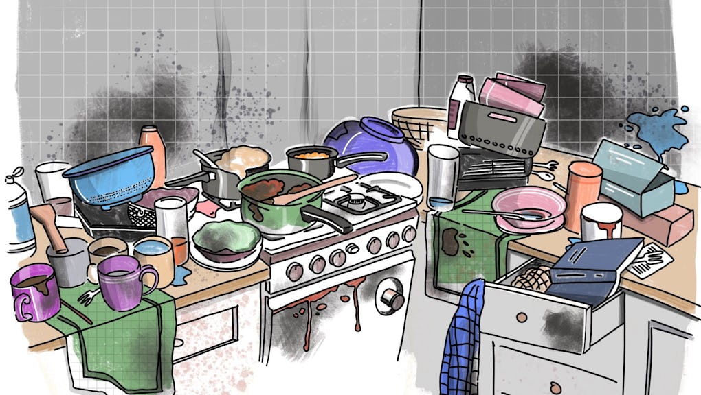 NO! You don't want to have things next to the stove that could catch fire. It's safe to have a clean kitchen.