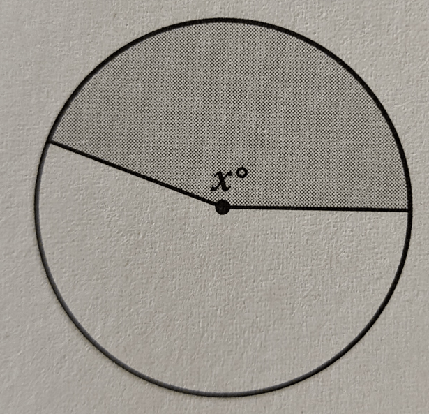 In the figure above, the ratio of the shaded area to the non-shaded area is 4 to 5. What is the value of x, in degrees?