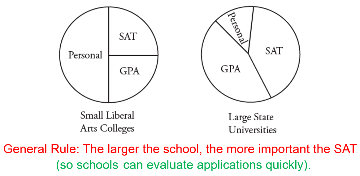True or False: The score you get on the SAT matters more if you are trying to get into a small liberal arts school.