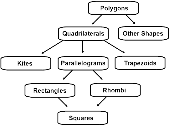 Julio drew a map to demonstrate his knowledge of quadrilaterals.