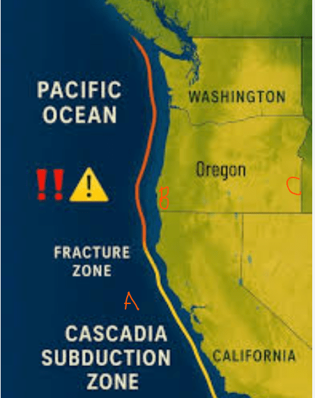 If an underwater earthquake occurs there, which coastline is most at risk for a tsunami?