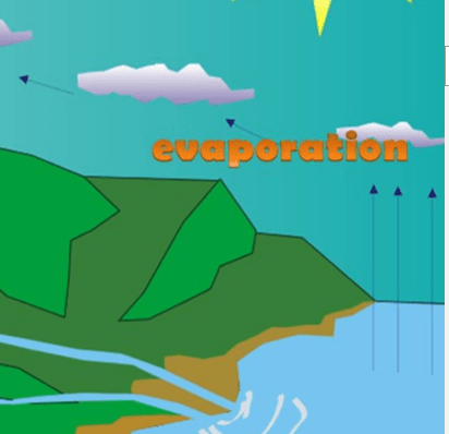 In order for evaporation to happen, what power source needs to happen that will make the droplets rise up?