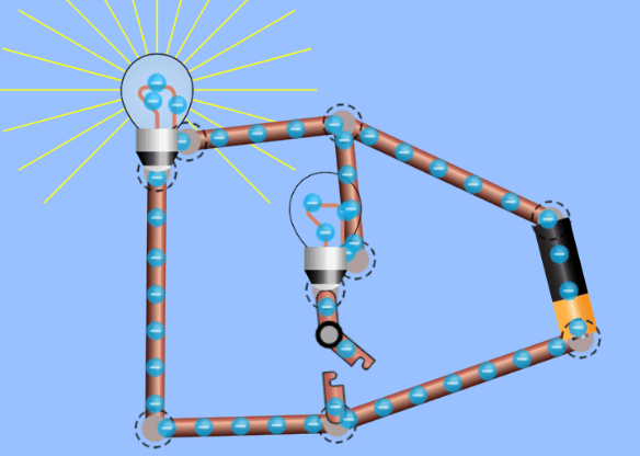 Draw a circuit that would allow a switch to have one light bulb on and one light bulb off