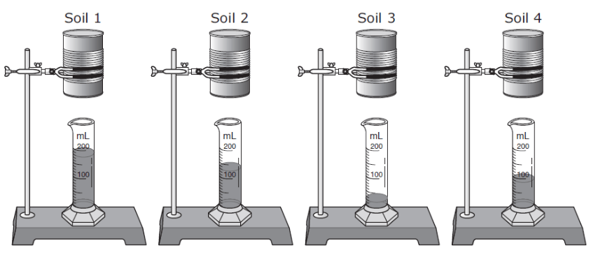 Según la cantidad de agua que retuvo, ¿qué puedes suponer que es el suelo 3? ¿Arena, grava o arcilla?