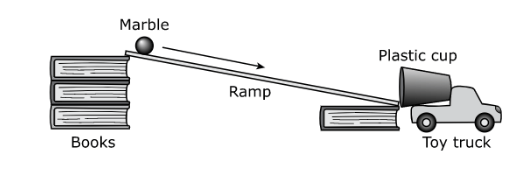 In this experiment, the variable of change is the height of books and the variable being measured is the distance the toy truck travels. What is the force being tested in this experiment?