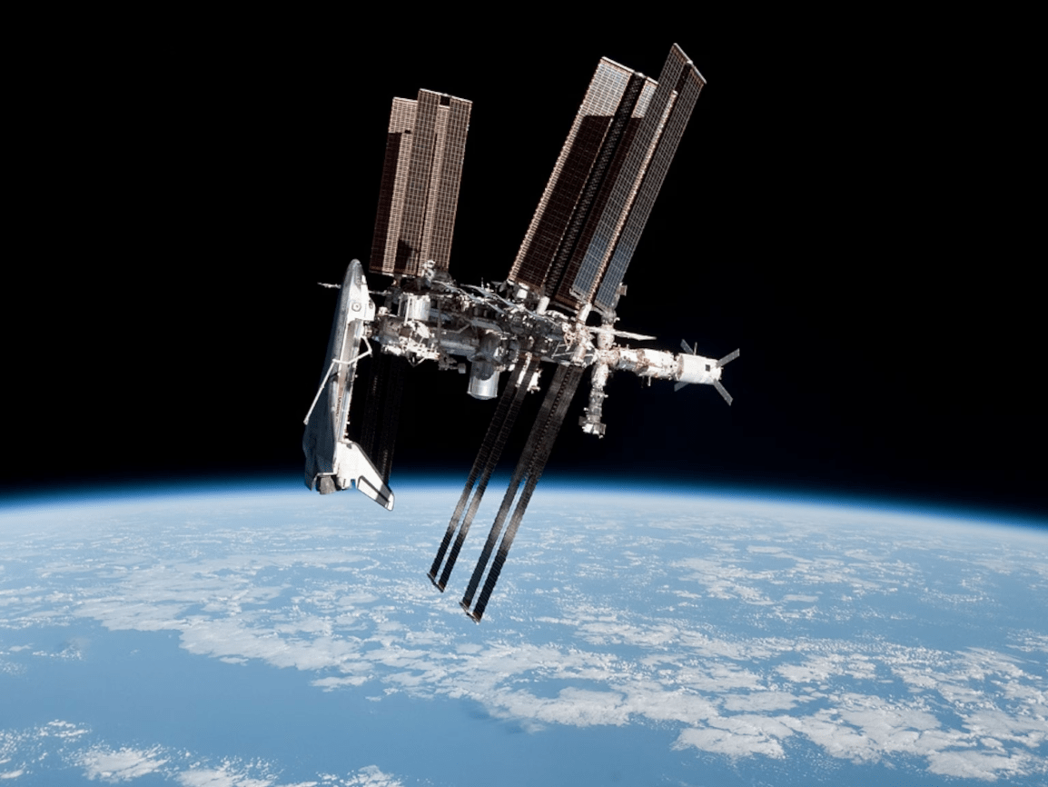 A rocket launching into space.