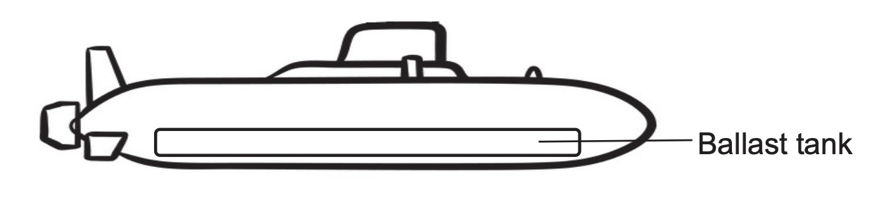 To make the submarine float, the ballast tanks are filled with air. To make it sink, the ballast tanks are filled with water.