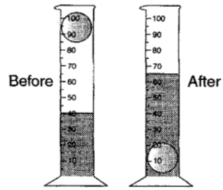 The mass of the ball is 10 g. What is the density of the ball? Don't forget the correct units!