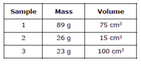 Which of the following would float in water if the density of water is 1 g/mL?