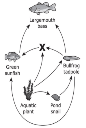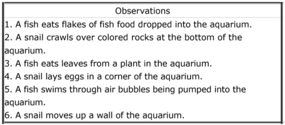 A student observed and recorded some activities in an aquarium. An interaction between two living parts of the environment is represented by...