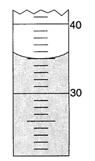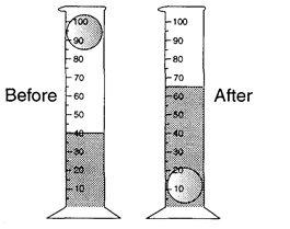 The sphere was dropped into water in a graduated cylinder as shown below.