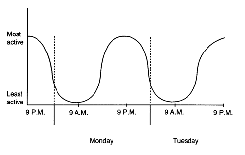 On Wednesday, the mouse would probably be most active at?