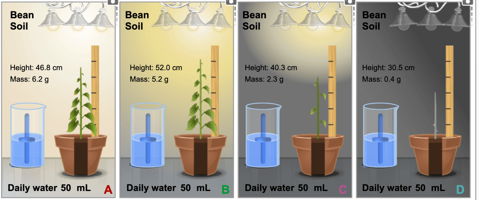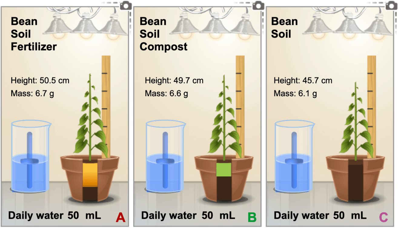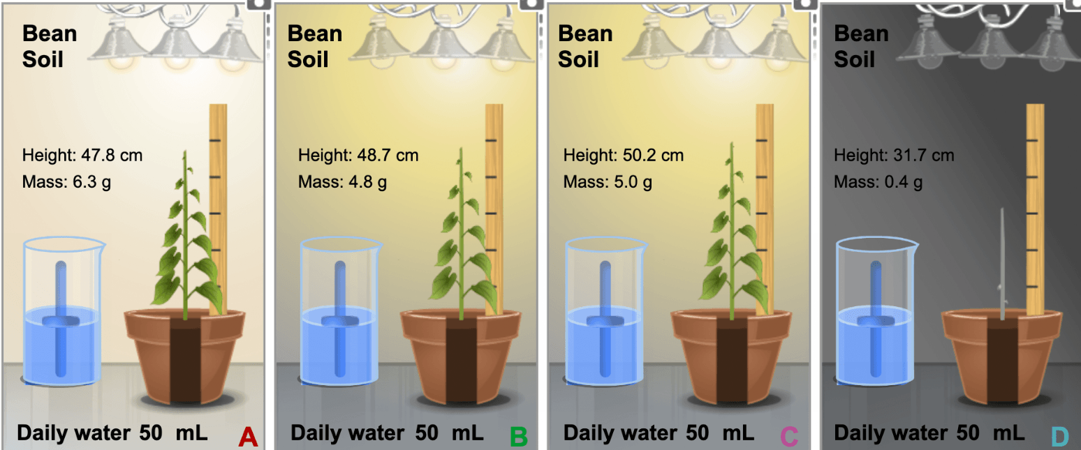 One constant is the type of plant (bean). Also the soil, the amount of water.