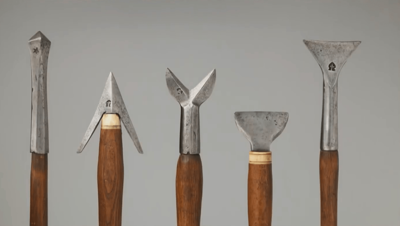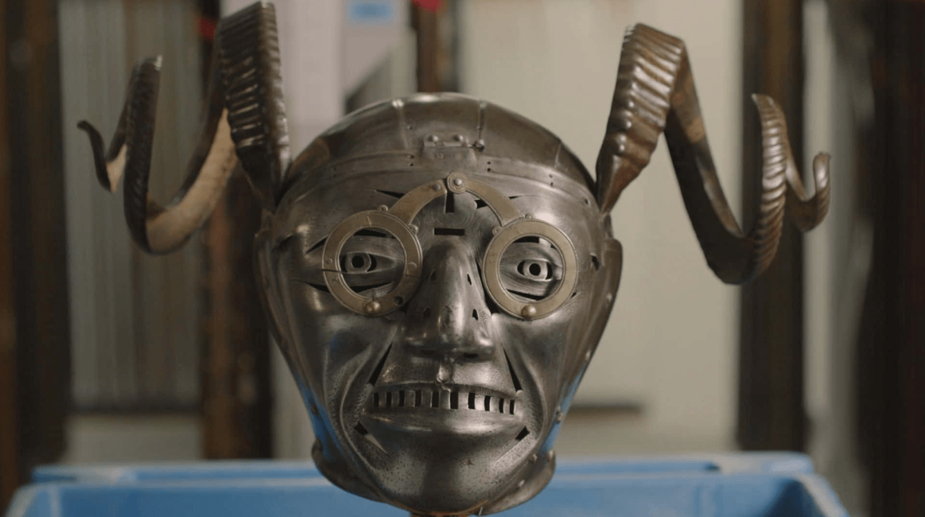 This iron helmet was one part of an entire suit of armor originally gifted to HIM by Maximilian I in 1514. Today, only the helmet survives. However, its freakish horned appearance has caused much confusion over the years.