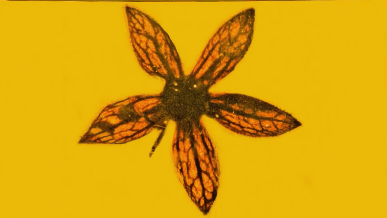 In the summer of 2017, the oldest flowers on Earth, dating back to the Jurassic period, were discovered in Myanmar. 100 million years ago, the flowers fell into a puddle of this material. That's how they were preserved.