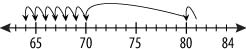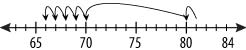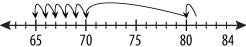 Dylan had 81 crayons. He gave 16 crayons to Mia. Which number line shows how many crayons Dylan has left?