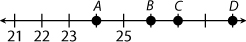 Which point on the number line represents 27?