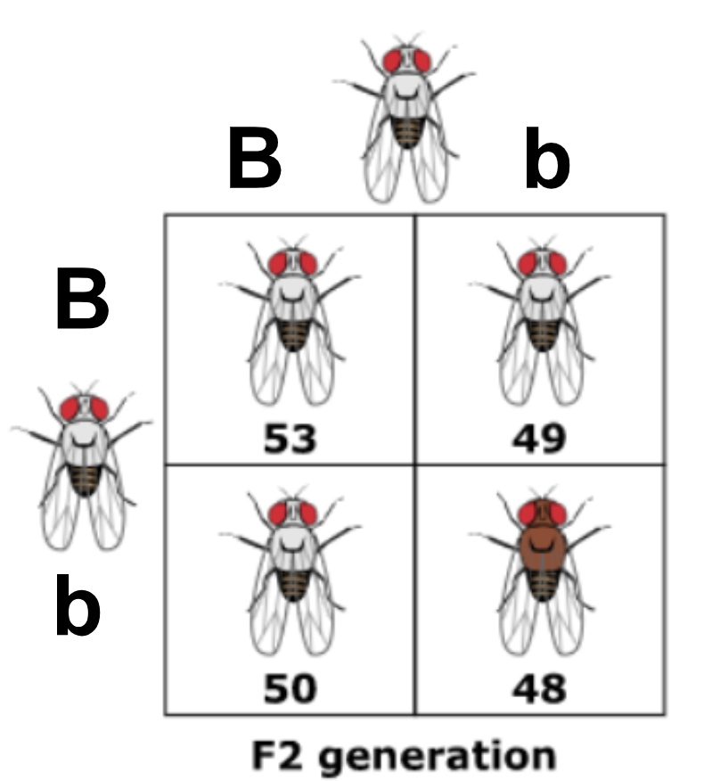 Calculate the percent of offspring of the genotype for the dark-body colored fly (bb).
