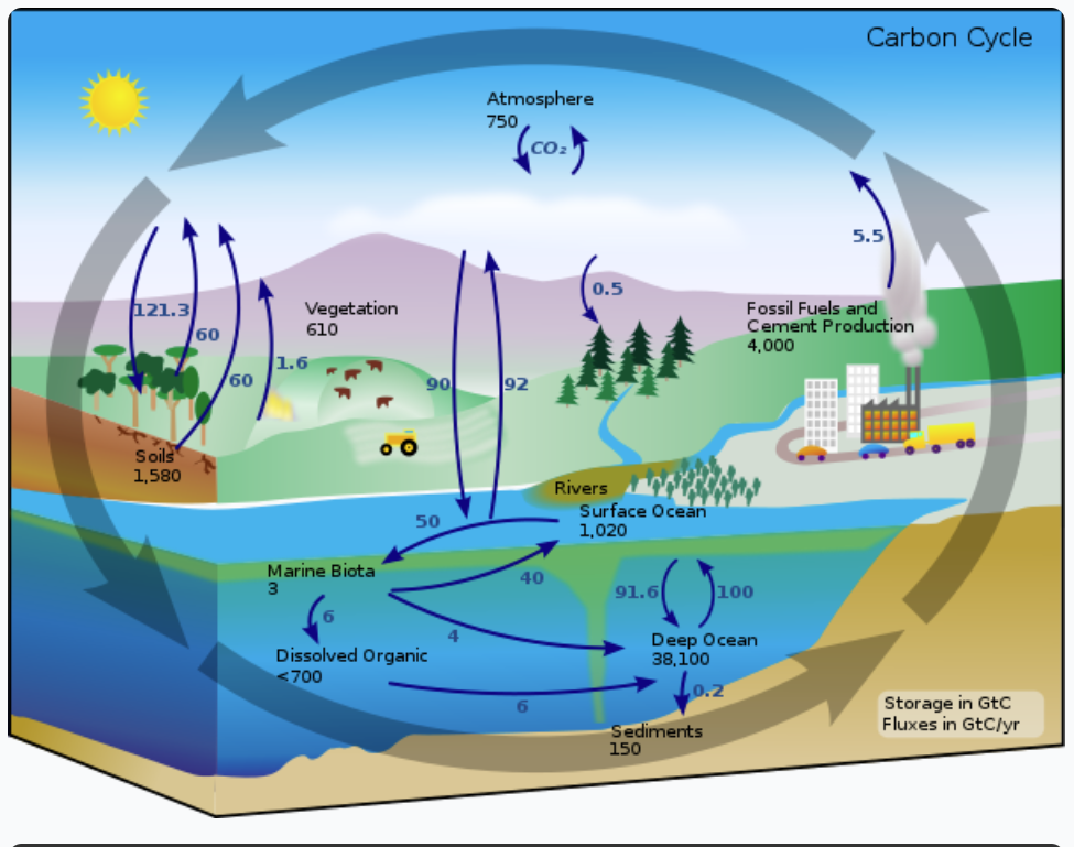The organic circulation of carbon from the atmosphere into organisms and back again