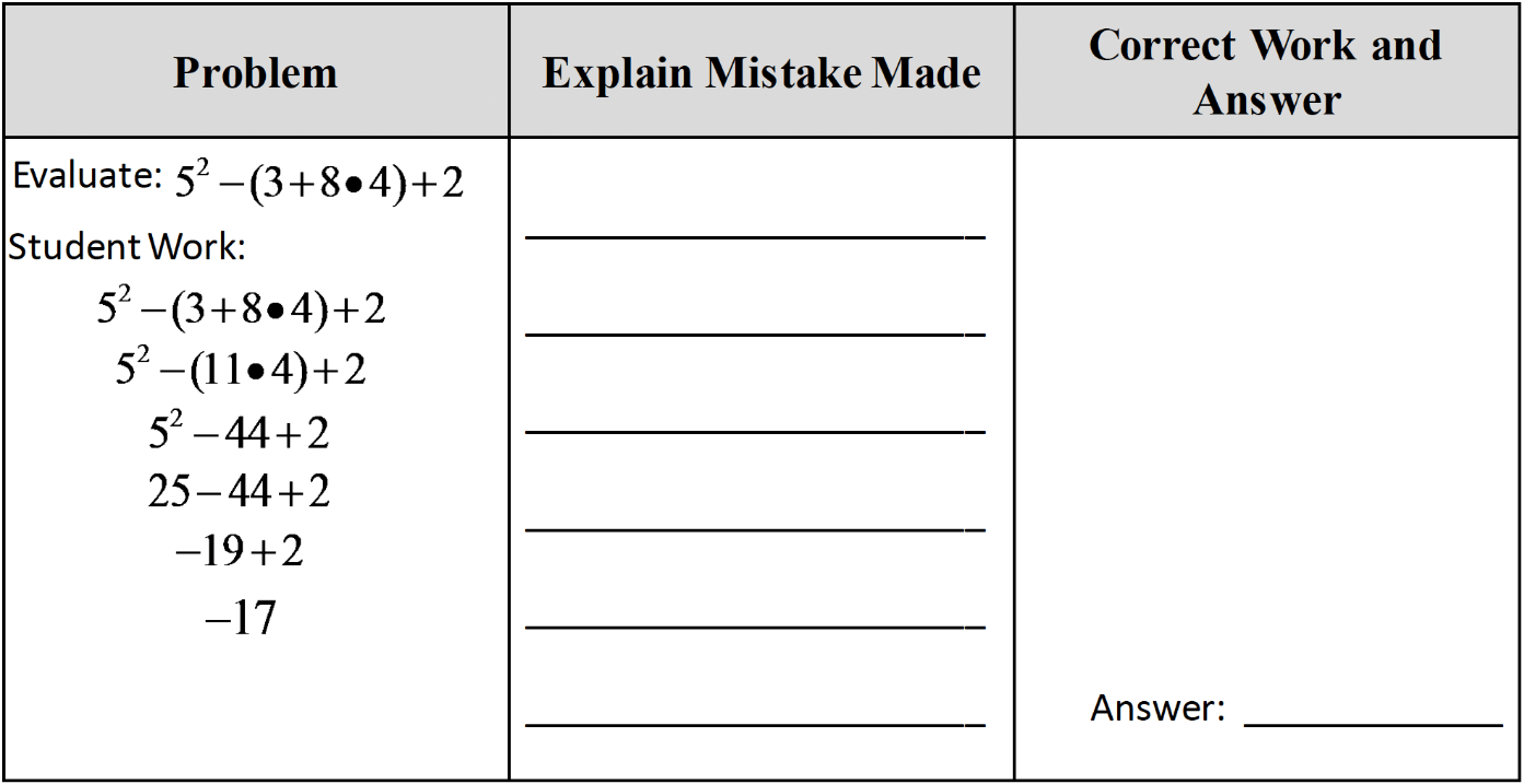 Ms. Birdsong was up at 3am again doing math. As always, she made a mistake when solving the problem. Explain and correct the mistake to solve the problem